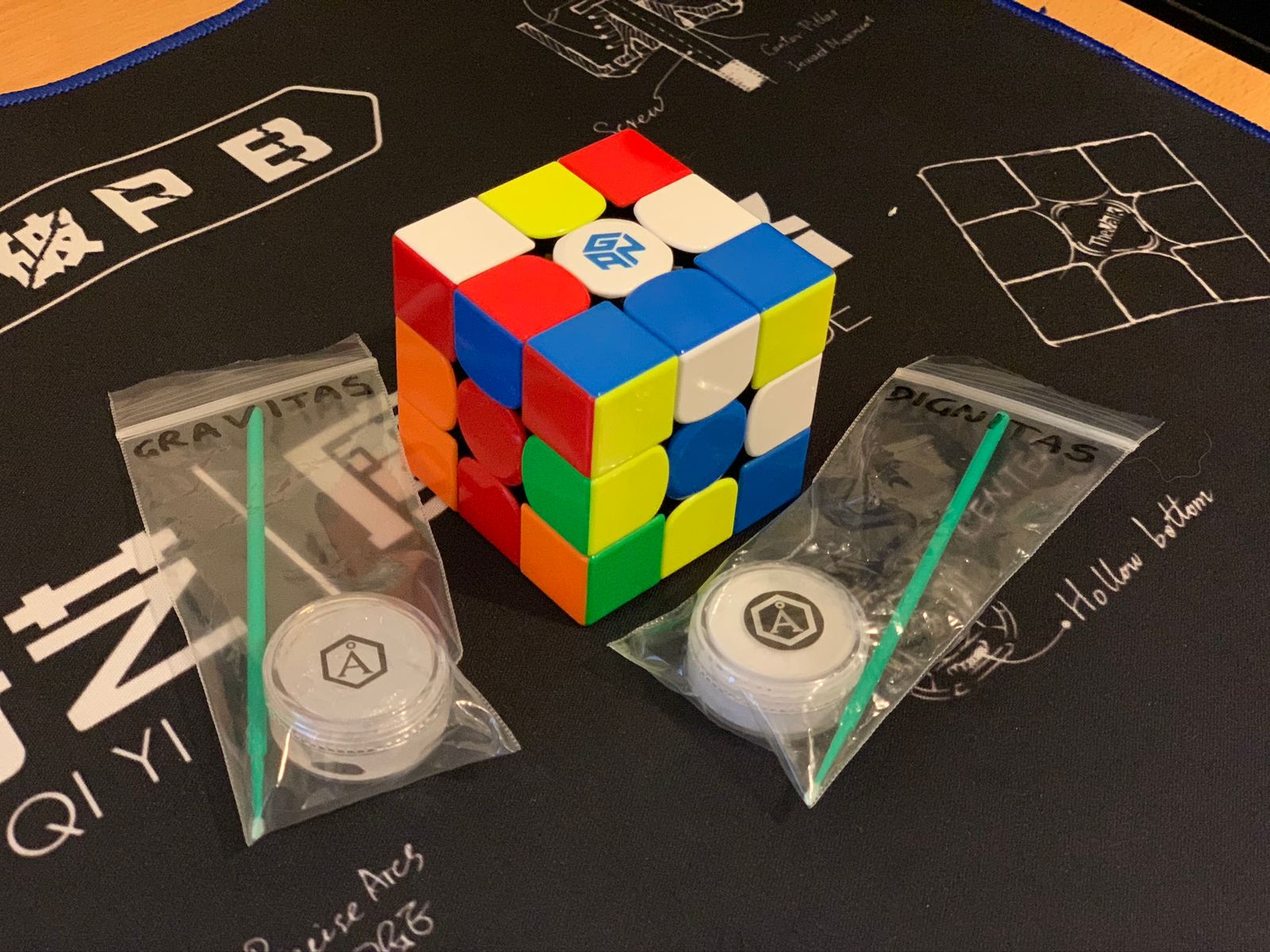 Angstrom Gravitas is a lube which creates a slow plushy feel. It slows the cube down quite significantly when first applied but once broken in the cube becomes extremely plushy therefore making the cube quite pleasurable to turn. Combined with it's 'twin' lube Angstrom Dignitas it creates a plushy smooth and buttery feeling similar to the GAN 356 X. I would recommend this lube who finds this description appealing.